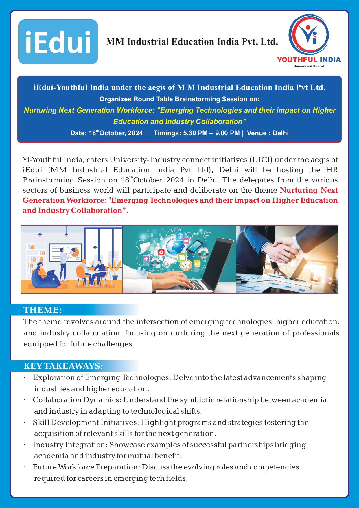 Corporate Leaders Round Table Brainstorming Session on 'Nurturing Next Generation Workforce: Emerging Technologies and Their Impact on Higher Education and Industry Collaboration. - 18th October 2024. New Delhi.